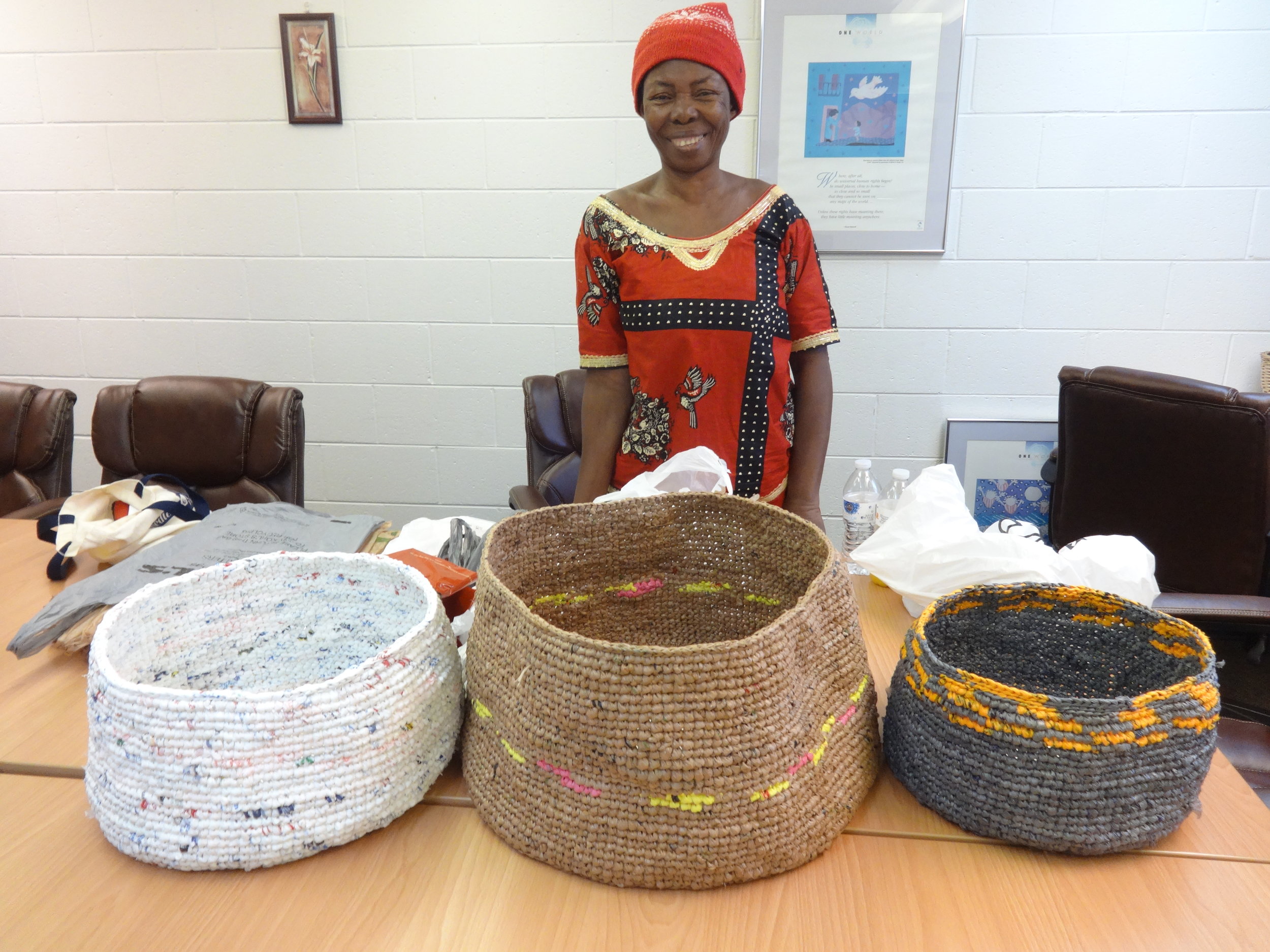 Local refugee women from the Democratic Republic of the Congo have been upcycling plastic bags and using them to create beautifully designed handmade baskets and mats. They are very proud to share their work with you as this is one of their ways of contributing back to a community that has been so welcoming to them.